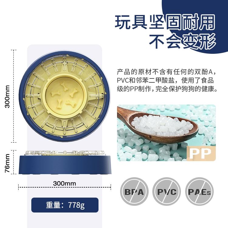 代号:旋转慢食狗碗 这是一款创新设计的狗狗慢食餐具,也是一款真正可以实现狗狗缓慢饮食的狗碗,这款产品可以真正有效的延迟狗狗的进食时间。产品拥有一个超大容量的储粮仓,储粮仓可以放入大约500克的食物(本产品只支持使用宠物干粮或者零食,不支持任何的湿粮和罐头)。将食物加入储粮仓,狗狗通过自己的操作可以获得食物的奖励。通过产品附带的调节功能,可以将狗狗的进食时间控制在5-60分钟。缓慢的饮食习惯可以提升狗狗的肠胃健康与身体素质,并能缓解狗狗的无聊情绪,消耗狗狗的多余精力,而且这个产品还可以作为一个益智玩具给狗狗使用。