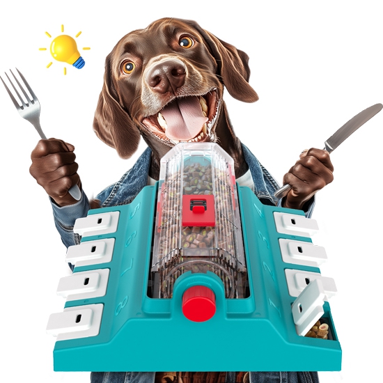 代号:聪明转转筒 这是一款创新设计的狗狗益智玩具,也是一个真正的慢食餐具。它与传统的益智玩具不同,玩具采用了集中供粮设计,宠物需要旋转食物筒完成食物分配。这款玩具属于入门级和进阶级相结合的产品。玩具有2个规格,一个M号,一个L号,M号专为小型和中型犬设计,L号专为大型和超大型犬设计。分别可盛纳390克和450克食物,玩具还可以调节食物的分配速度,以此控制宠物的使用玩具的时间和难度,并可以作为一个慢食餐具给狗狗使用,矫正宠物快速饮食的不良习惯,维护宠物的肠胃健康,也可以作为一个减肥餐具给体重过于肥胖的狗狗使用。